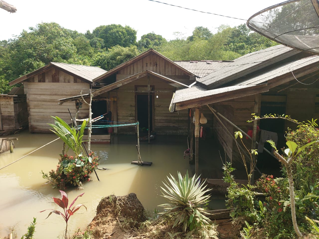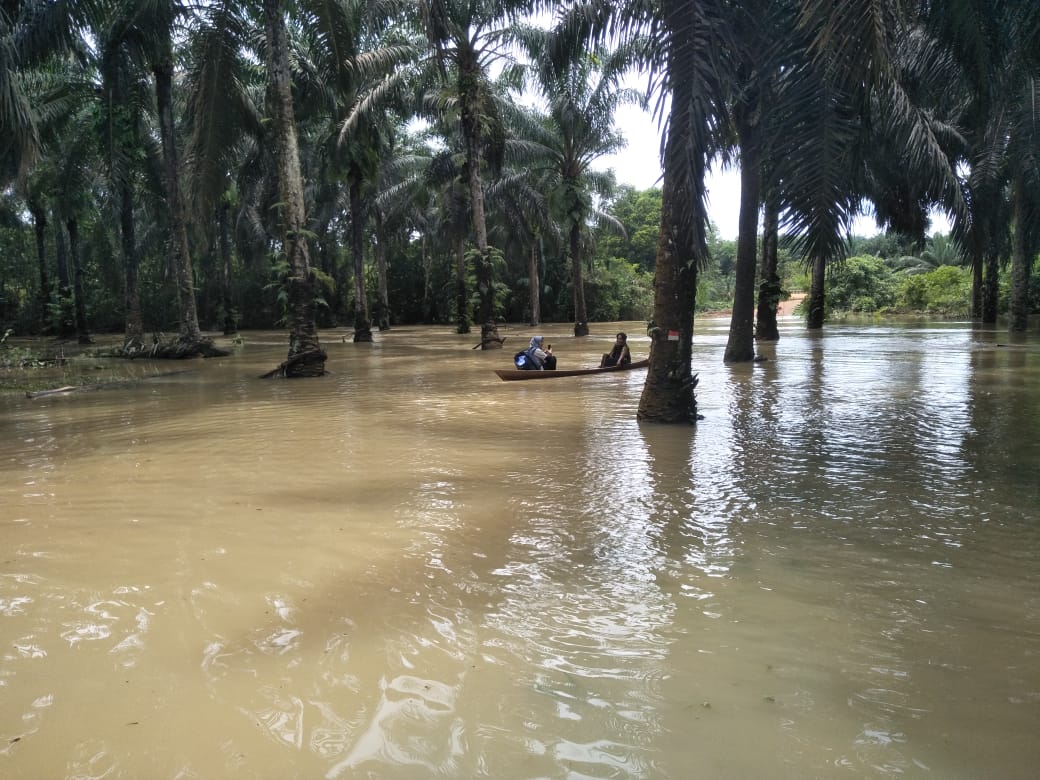karena genangan air mencapai hingga 5 meter, menenggelamkan rumah warga dan mengganggu akses jalan utama., dengan kerugian materiil pada rumah dan fasilitas umum.